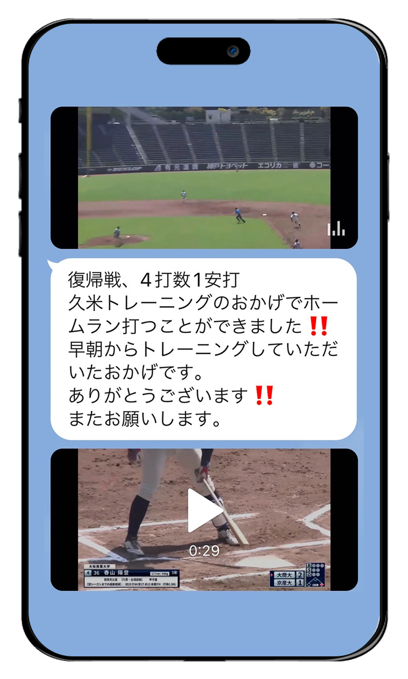 森友哉専属トレーナーの久米をはじめとする、球界の一流選手・トレーナーがコーチングをいたします。